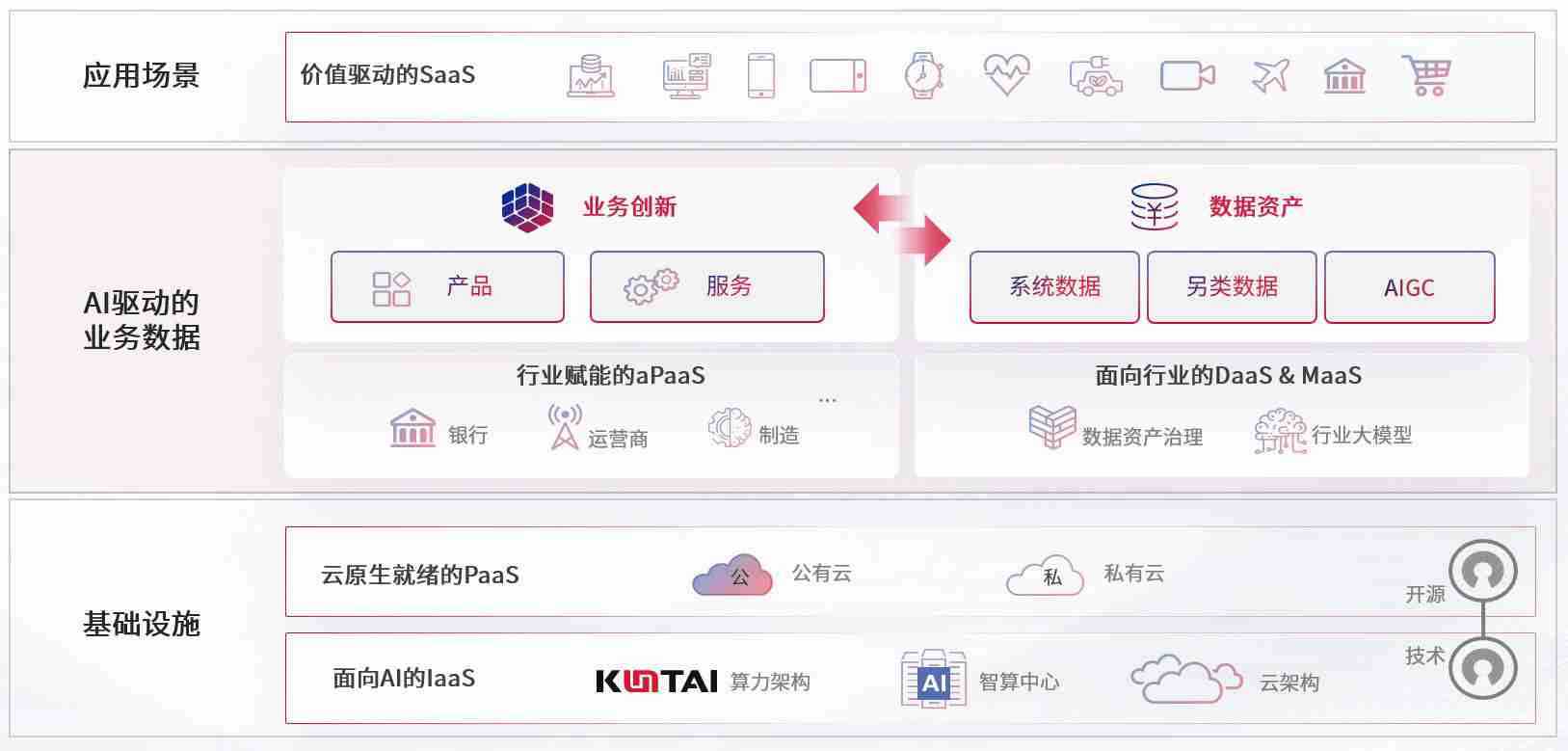 数字时代,,,,围绕企业数字化转型的关键要素,,,,z6com尊龙数码开创性的提出数云融合战略和技术体系框架,,着力在云原生、、、数字原生、、AI原生和信创产业上架构产品和服务能力,,,为处在不同数字化转型阶段的快消零售、、、汽车、、、、金融、、医疗、、政企、、、教育、、、、运营商等行业客户提供泛在的敏捷IT能力和融合的数据驱动能力,,,构建跨界融合创新的数字业务场景和新业务模式,,,,助力企业级客户建立面向未来的核心能力和竞争优势,,,,全面推动社会的数字化、、、智能化转型升级。。。。